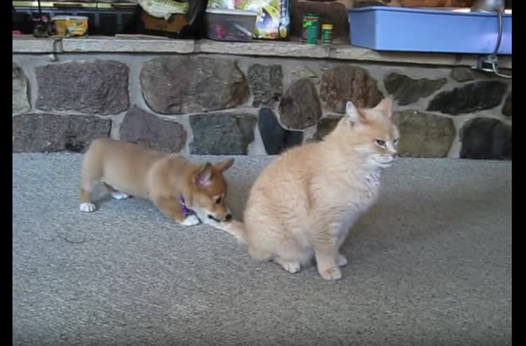 猫さんにかまってほしい子犬さん。 しっぽを噛んだり、ちょっかいを出しますが… 完全スルー。ソファの上に行ってしまいました。 すると子犬さん、今度は飼い主さんに かまって〜! 二番目でもいい、可愛すぎです。 -
