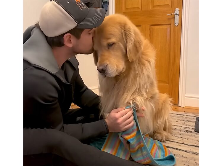 落ち込んでいる愛犬を、優しく励ます飼い主さん。