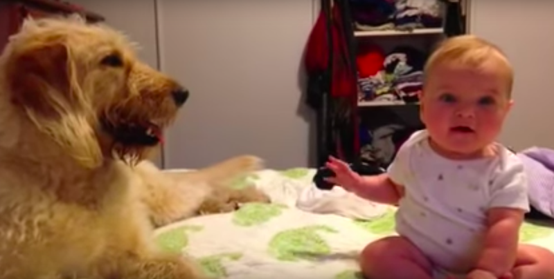 ワンコさんに触りたそうな赤ちゃん。 触ってもいい?あ、でも… と恥ずかしそう。 それを見たワンコさん、赤ちゃんのお顔をペロペロ! ぐっと距離が縮まったかな? 可愛すぎる二人なのでした。 出典:bradlyg
