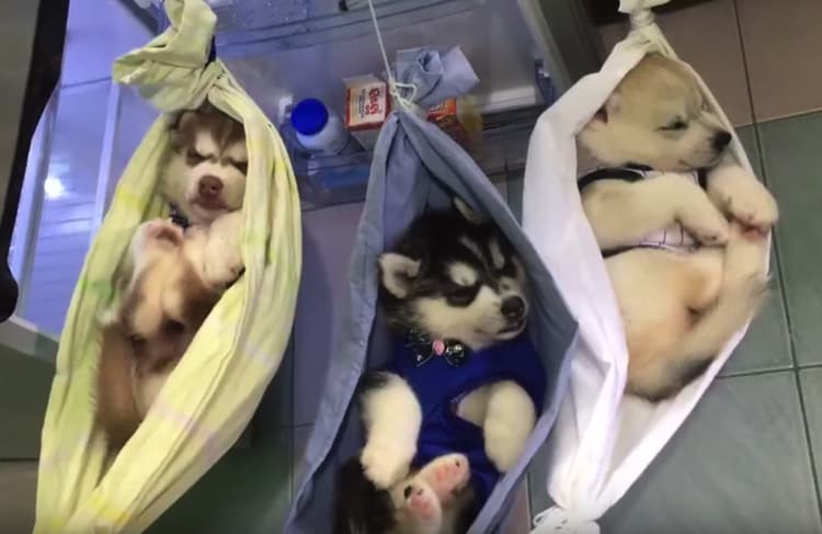 ずらっと並んだハスキーさん ゆらゆら揺れるハンモックですやすや… すっぽり収まる姿は、なんだか納豆みたい? ときどき動く手足も可愛い! おだやかで癒される光景なのでした。 -