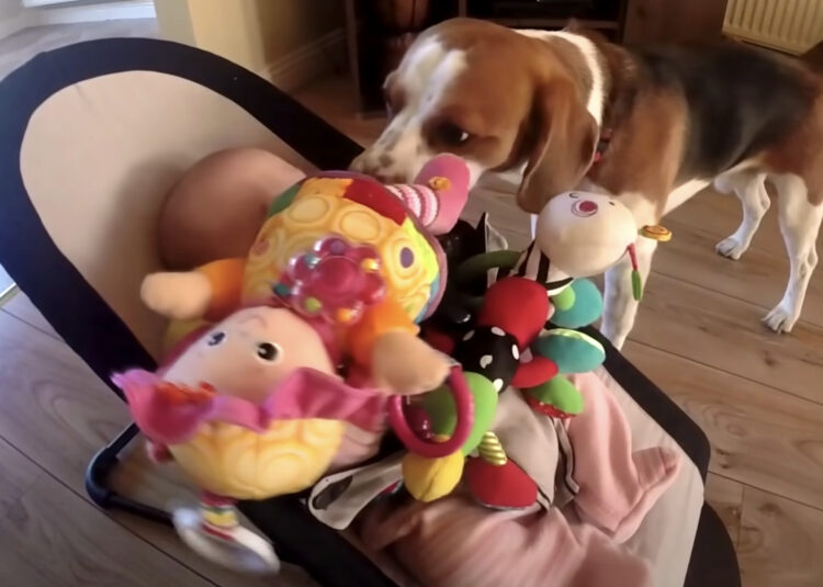 おもちゃをプレゼントして赤ちゃんに謝る犬さん。でもちょっと多かった!