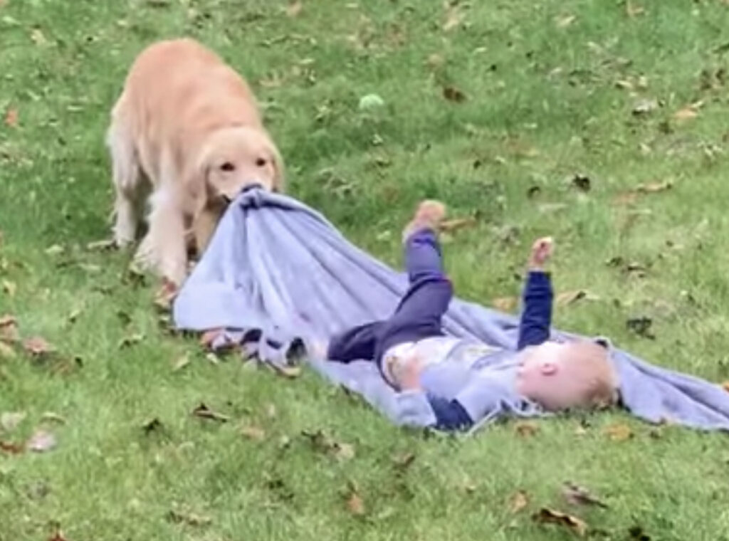 お庭で楽しく遊んでいた ゴールデンレトリバーさんと その家族の二歳になる男の子。 毛布を広げてその上でゴロゴロ♪ 楽しい時間を過ごしていたのですが、 男の子が使っていたその毛布、 実は犬さんのものだったようで 犬「そろそろ返してよ〜」 と力ずくで...