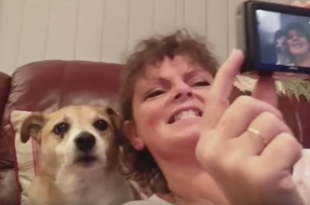 一緒に自撮りしましょ♪ カメラは苦手?あまり上手に笑えない犬さん。