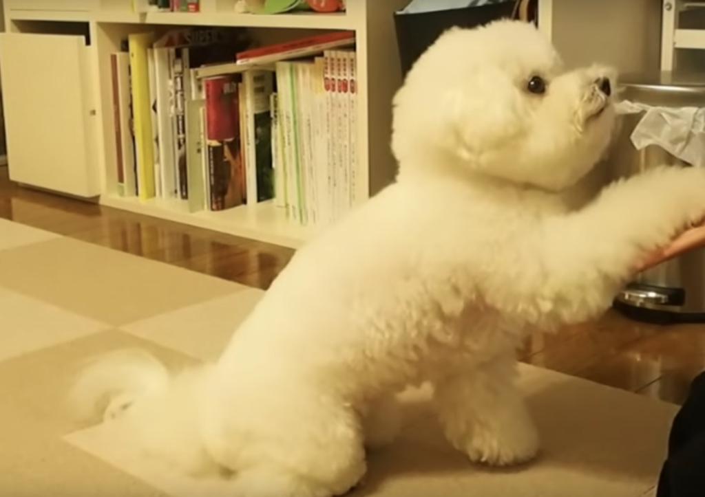 ビションフリーゼのコハクさん。 飼い主さんの声に合わせて、お手の練習です。 「右手〜!」 ぺしっ。 「左手〜!」 ぽんっ。 「あごっ!」 ぽすっ。 最後はカメラ目線でドヤ顔。とっても可愛いコハクさんなのでした。 出典:juri koha
