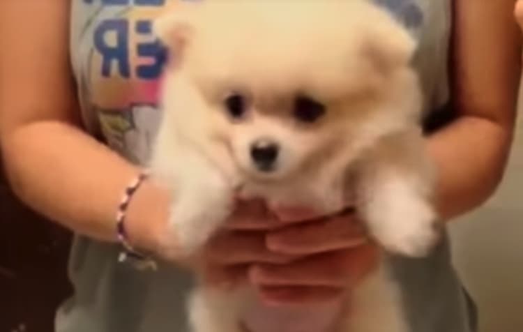飼い主さんに抱きかかえられた、 ふわふわもこもこのポメラニアン子犬さん。 小さな手足をひょこひょこ動かして 一生懸命エアー水かき! なんでかわからないけど、可愛すぎです。 -