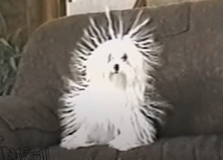 白い長い毛の犬さん。 ソファでくつろいでいると飼い主さんがやってきて 思いっきり毛布でなでなで〜! 尻尾を振って喜んでいると、 飼い主さんが離れた途端... あれれ!? 静電気で毛がすごいことに。 全身の毛が逆立って一回り大きくなっちゃいました。 ... -