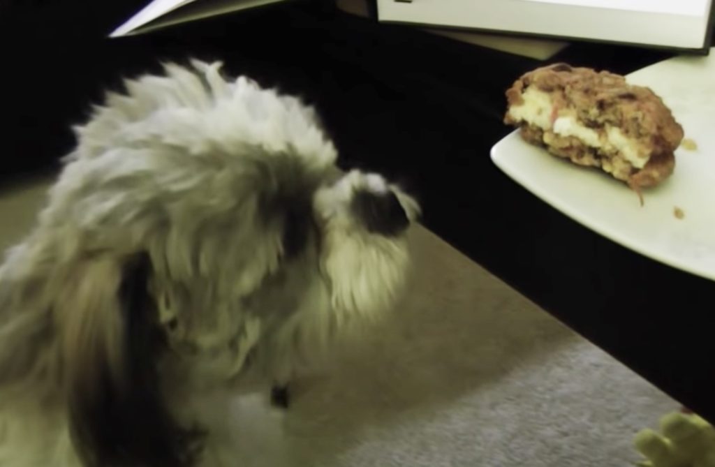 クッキーを食べていた飼い主さん。 中にはクリームがたっぷりで 大きくてとっても美味しそう! このお家には2匹の犬さんがいて、 そのうちの1匹、スキッピーさんは 飼い主さんがこのクッキーを食べていると いつも欲しがってしまうそうなんです。 どうして... -