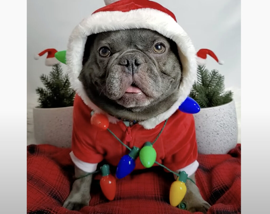 クリスマスが近づいてきて、 飼い主さんにコスチュームを着せてもらっているのは おとなしいフレンチブルさん。 サンタ帽付きのパーカーを着て、 背後にはミニクリスマスツリー♪ そして体には他にも、 ピカピカと光る電球まで!! 飼い主さんが張り切っち... -