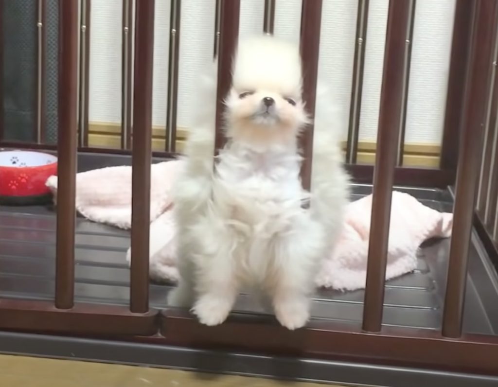 この狭い柵からどうやって?外に出たい子犬の脱出方法は…
