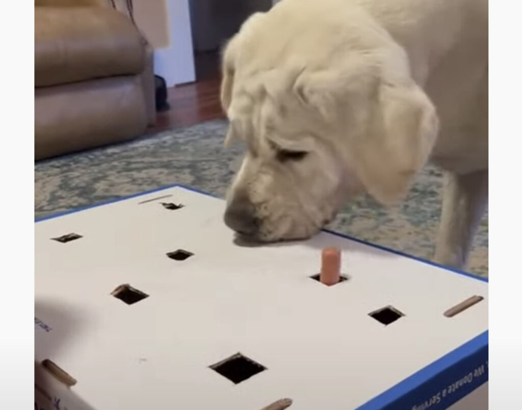 愛犬を喜ばせてあげようと 段ボールに小さな穴を開け 手作りのおもちゃを作ってあげた飼い主さん。 この小さな穴から犬さんの大好きな ウィンナーがピョンと出てくる! もぐらたたきのように ぴょこっと出てくるウィンナーを 素早く捕まえて遊ぼうという... -