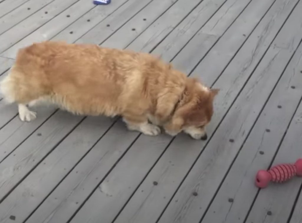 ウッドデッキで、下を向きながら歩くコーギー犬さん。 よく見るときれいにご飯が並べられてます。 飼い主さんが、昔流行ったパックマンゲームを再現! 落ちているクッキーを食べながら進み。 赤や青、緑色のゴーストにぶつかったら ゲームオーバーというル...