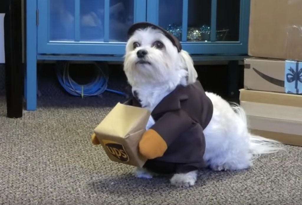 配達員のお兄さんにサプライズ! ワンちゃんの可愛いおもてなし。