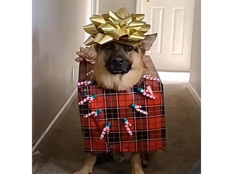 「クリスマスプレゼントはボク♪」変なコスプレをさせられるワンコ。