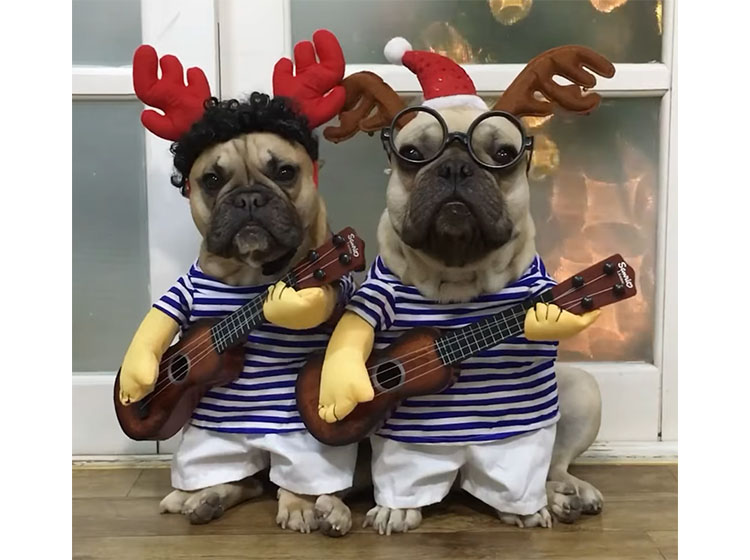 クリスマスシーズンになったので 愛犬にコスチュームを着てもらって、 クリスマスソングに合わせて 動画を撮影することにした飼い主さん。 フレンチブルドッグさんが二匹並んで トナカイと、サンタさんになりきっています。 ギターまで手(?)に持っていて、...