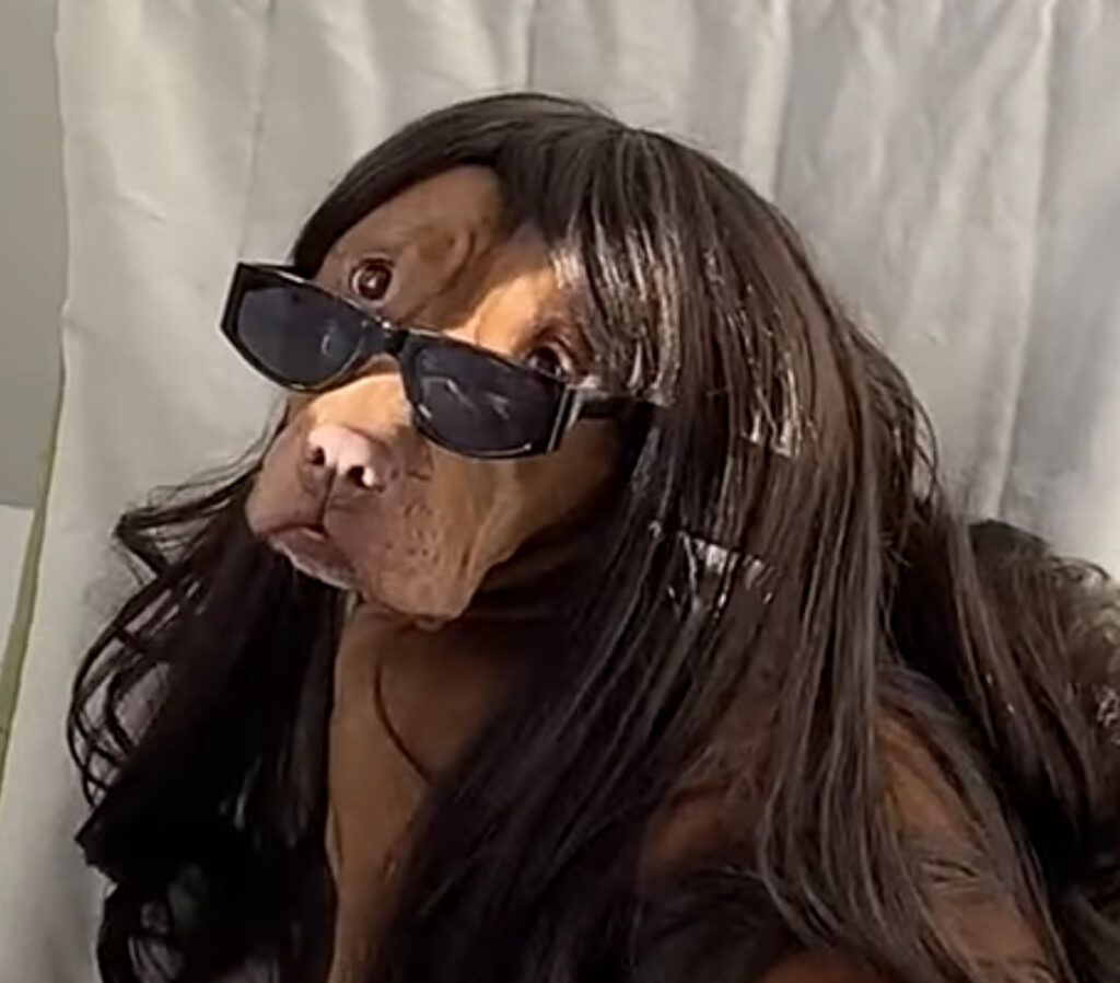思わず2度見をしてしまうような 面白い格好をしている犬さんがいました! 1人掛けのソファーに座って のんびりとお昼の時間を過ごしているのですが よく見るとその頭には飼い主さんのウィッグ! そしてカッコいいサングラス。 ソファーに丸まって座ってい...