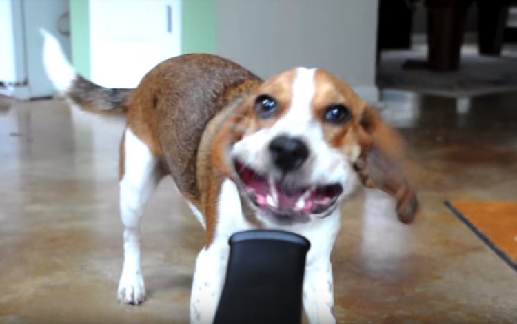 アニメみたい!ドライヤーで遊ぶ犬さんのお顔が…。