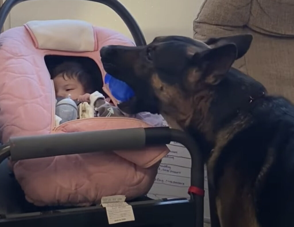 4歳になるジャーマンシェパードのチャンプくん。 とーっても人懐っこい犬さんで 飼い主さんにはもちろん、 最近生まれた赤ちゃんにまで 仲良くなりたくって、 可愛い行動を取るのです♪ この日は寝ている赤ちゃんの元に、 青いボールを持ってやってきました... -
