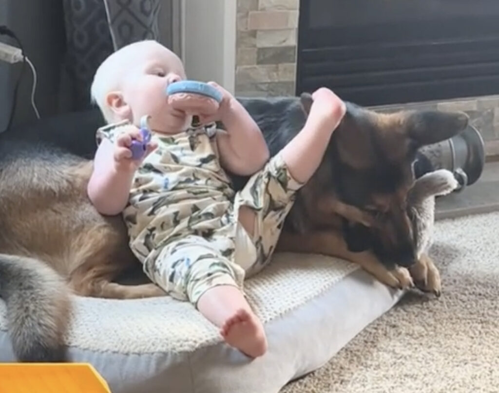 好きな遊びは違うけど、それでも仲良しなジャーマンシェパードと赤ちゃん。