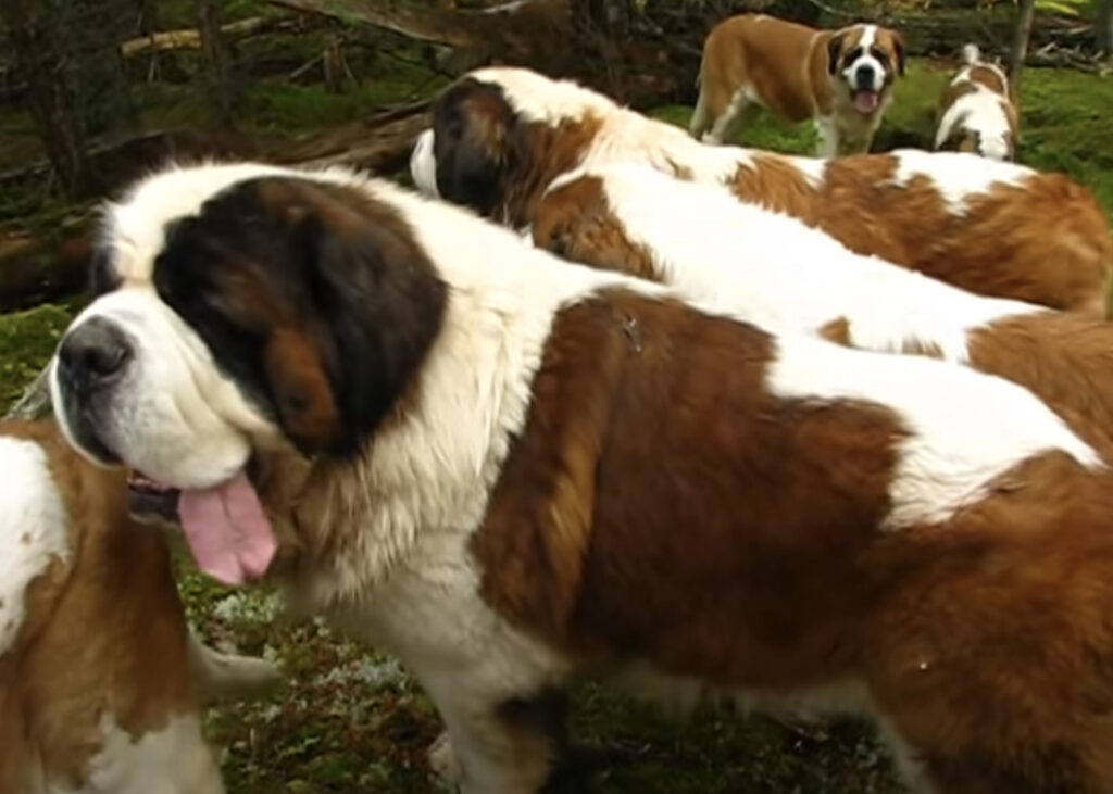 勢いがすごい! セントバーナードの大群とお散歩。