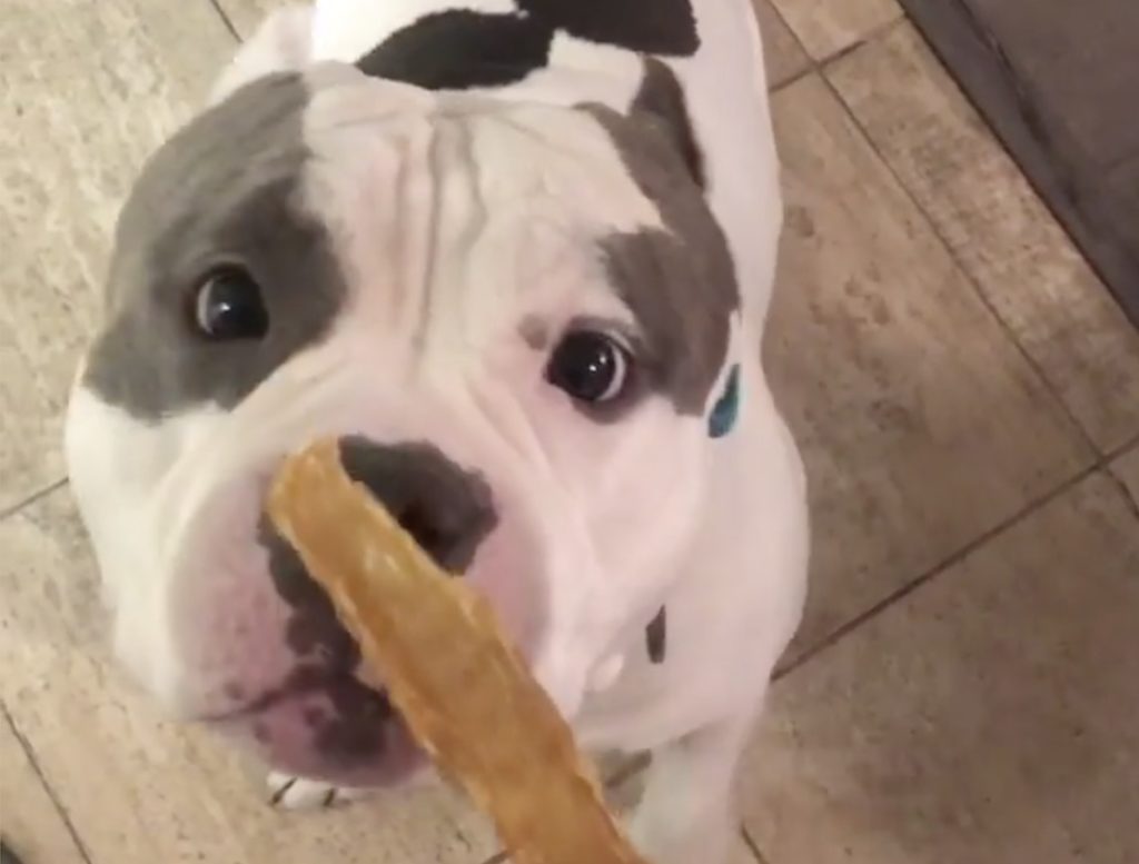 ピットブルのブルータスさん。 食べることが大好きで、 中でもジャーキーのおやつがもらえる時は 最高に喜んでくれるんです。 その喜びようと言ったら、嬉しすぎて ルンルンで踊り出しちゃうほど! 飼い主さんにジャーキーをもらうと スキップしながらお部...