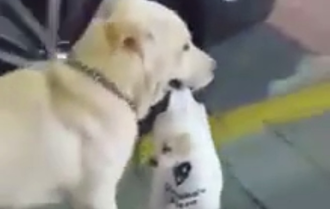 せっせせっせ! レジ袋をくわえて歩くワンコさん。 よくみて見ると、袋の中から 可愛いものがチラリ… 子犬さんだー! たしかに安全? 便利な方法で持ち歩くワンコさんなのでした。 -