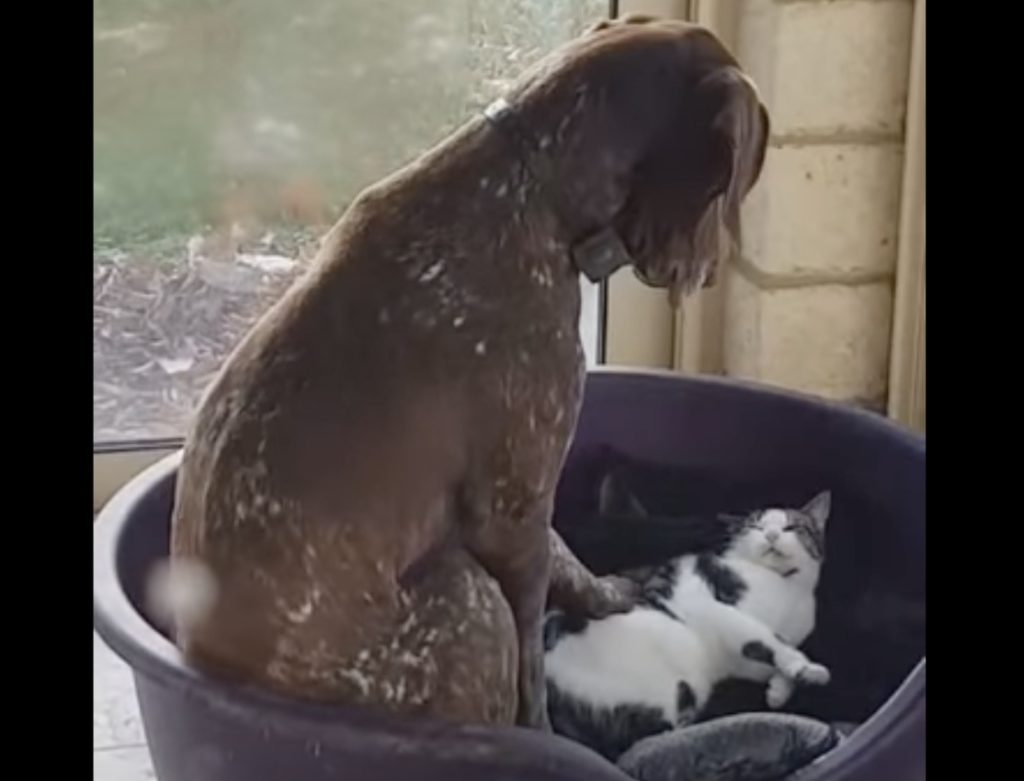 犬「もうちょっと端っこに寄って?」猫にベッドを取られてしまい…