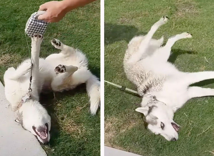 アメリカに住んでいるハスキーのダコタさん。 飼い主さんとドッグパークに遊びにくるたび 毎回困った行動を取るそうです。 それは帰る時間になると 犬「やだー!まだ帰らない!」と 芝生の上に転がって駄々っ子になること! リードを引っ張っても歩かない... -