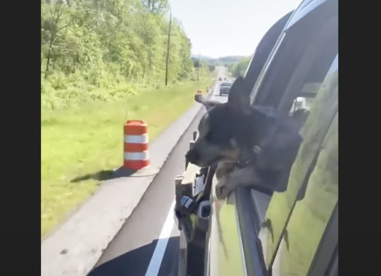 すれ違うたびにパクッ!車から身を乗り出してアレを食べようとするワンコ