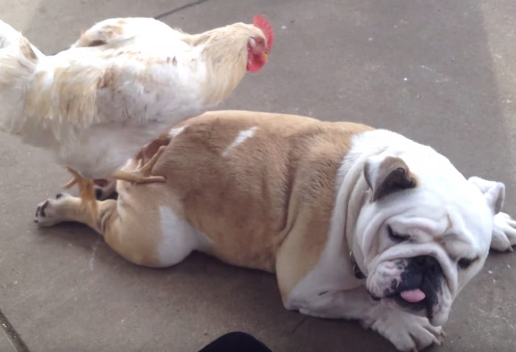 フミフミフミ。ワンコの背中に乗っかって マッサージをするニワトリさん。 重さとかがちょうどいいのかな? 気持ち良さそうな表情でとろーん。 とっても可愛い組み合わせなのでした。