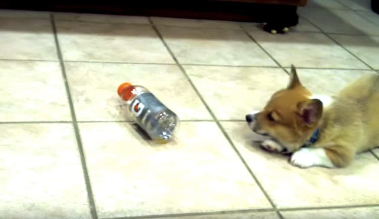 なんでそれ?!ペットボトルと戦う子犬が可愛すぎる。
