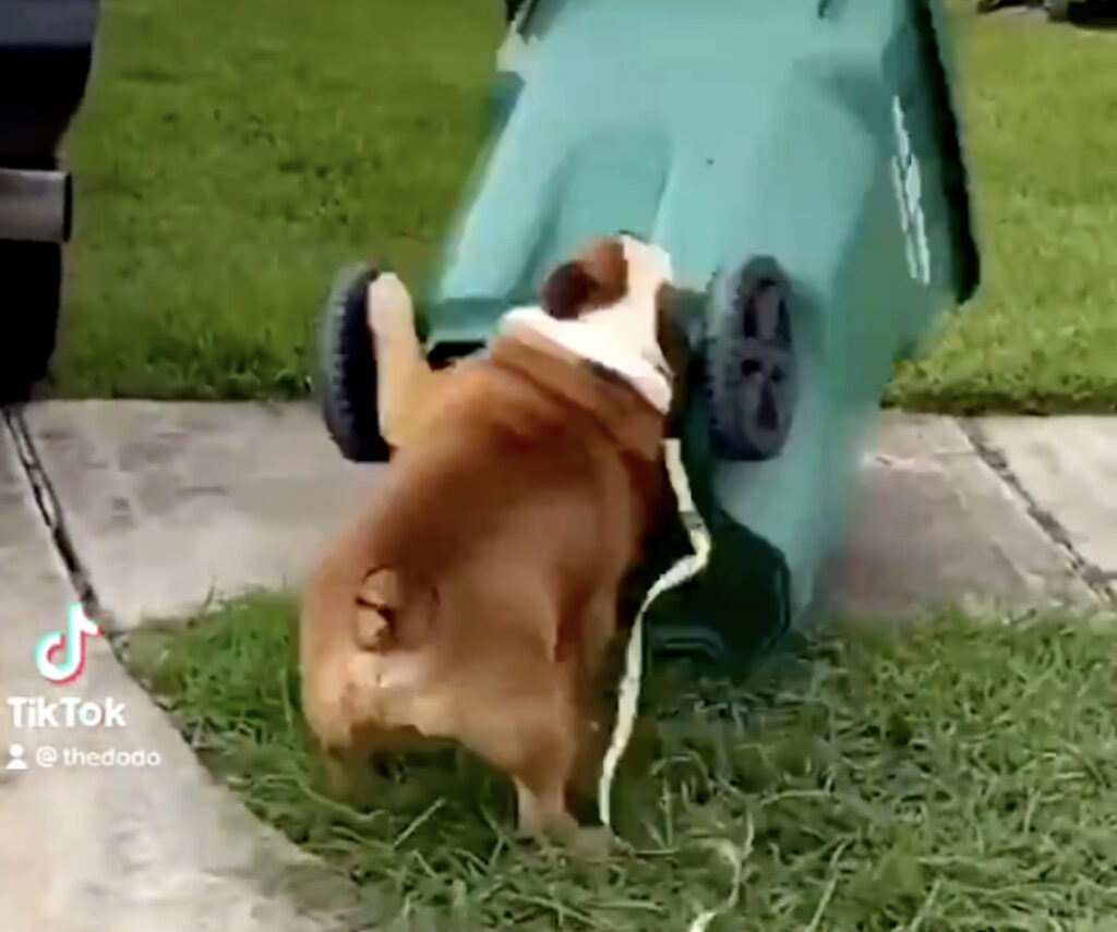 ゴミ箱になんか恨みがあるの!? 体当たりが止まらない犬。