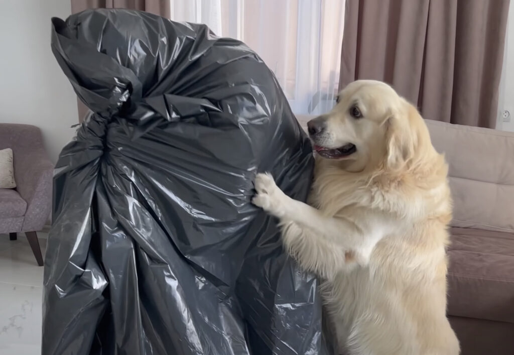 飼い主さんにいつもべったりな 甘えん坊のゴールデンレトリバー、ベイリーくん。 いつも飼い主さんが面白い遊びを考えて 楽しませてくれているのです♪ 今日は愛犬と一緒にかくれんぼ。 大きな黒いビニール袋をかぶって、 身を隠している飼い主さん。 そし... -