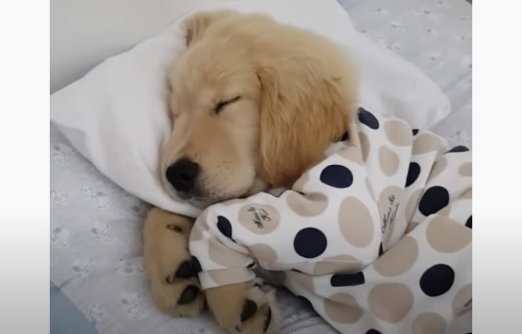 寝る時間になると、 飼い主さんの枕を奪ったり、 毛布を奪って行っちゃう犬さんを見かけますが、 こちらのゴールデンレトリバーの子犬さんは 飼い主さんの物は使わずに ちゃんと自分専用の物を使っているんです。 ふわふわ枕に、お気に入りの柄の布団、 パ...