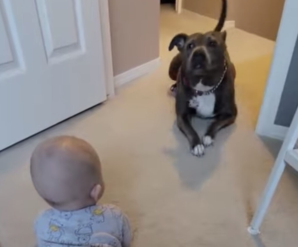 大型犬のピットブルと 向かい合って見つめ合う赤ちゃん。 よ〜く見てるんだよ!!と 赤ちゃんの前で犬さんがほふく前進!! もしや、これはハイハイのお手本を見せてる? 赤ちゃんと同じ目線になって お手本を見せてくれる犬さん、 なんて優しいんでしょう♪ ... -