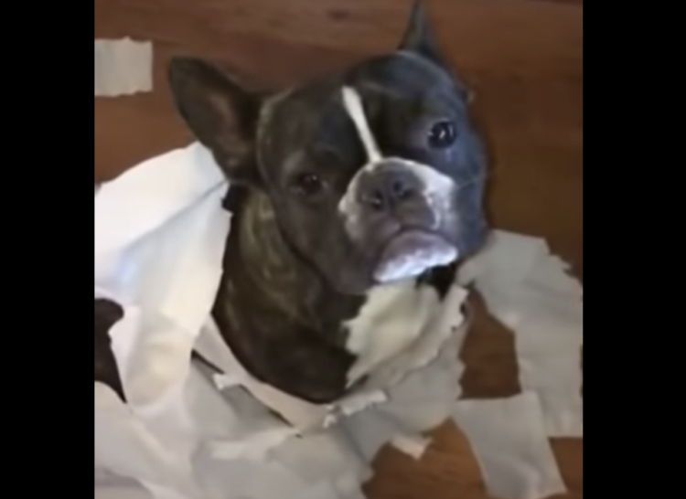 体にグルグルとトイレットペーパーを巻いている フレンチブルドッグさん。 ミイラごっこでもしようとしたのか... 一体何をしたら、こんな風に 体にトイレットペーパーが巻きつくの? そして部屋には千切れたトイレットペーパーが散乱。 「誰がこんなことし... -