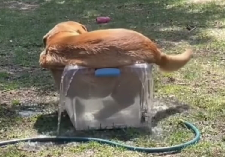 泳ぐよりも楽しい?面白い水遊びに気づいた犬さん。