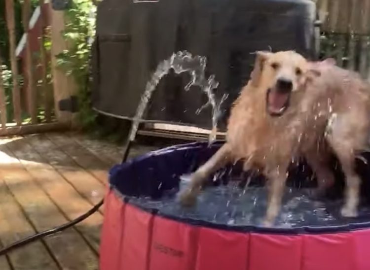 めちゃくちゃ楽しそう!プールサイドにホースを付けたらワンコ大喜び!