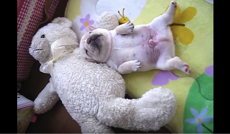 「へそ天」で爆睡!ゆる可愛い、フレブル子犬。