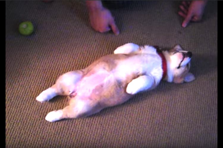 そこが動くか。寝ている犬のおなかを触ると…