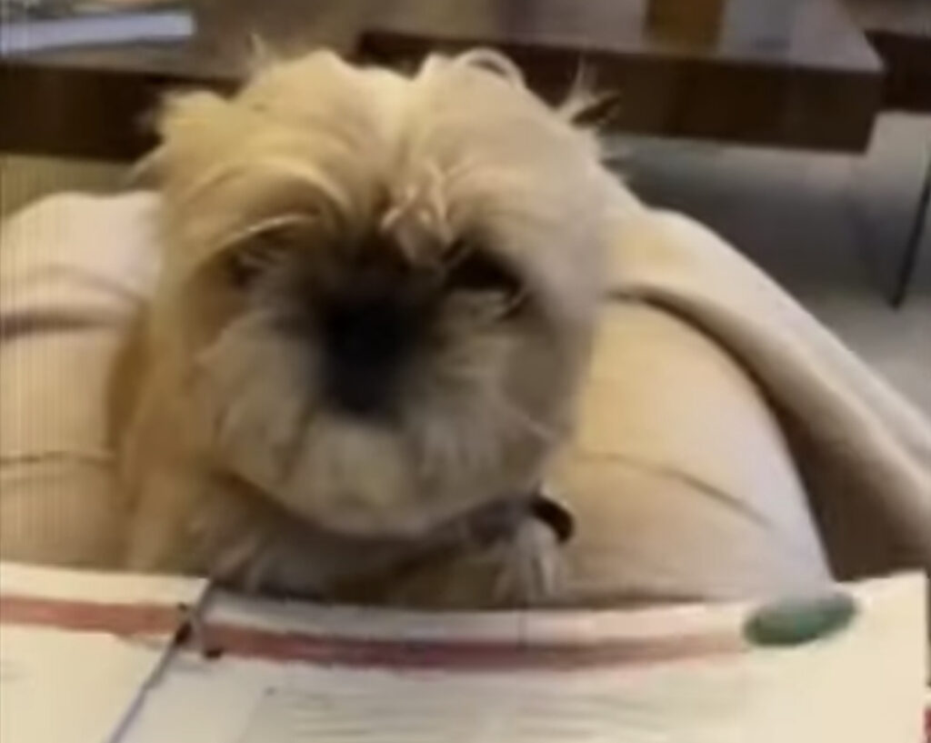 どんどん頭がボサボサになっていく犬…その理由は飼い主が呼んでいる本のせい?