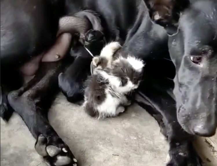 ミルクをあげている犬、でも飲んでいるのは子犬じゃなくて…?