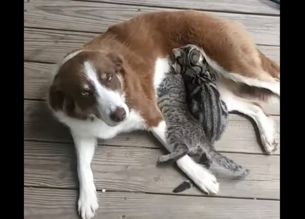 ママは犬なの!子猫のお世話をしている優しいワンコ。