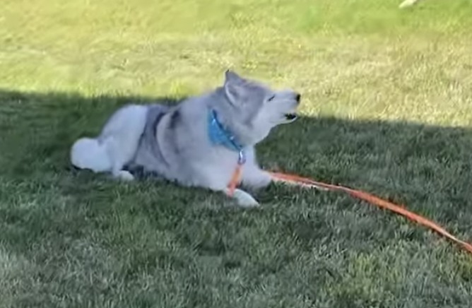 犬「ずっとドッグランにいたいよぉ〜!」帰りたくないハスキー犬、駄々っ子になる。