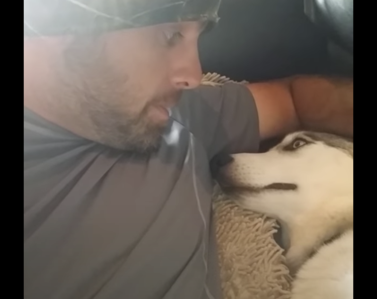 ソファを独り占めして、 のびのびと寝ているハスキー犬さん。 そこに飼い主さんがやってきて 「ねぇ、隣に寝ていい?」と 愛犬と一緒に添い寝しようとします。 犬「え?ふたりも寝たら狭いじゃん...」と どうしようか一瞬考え込んでいるうちに、 飼い主さ...