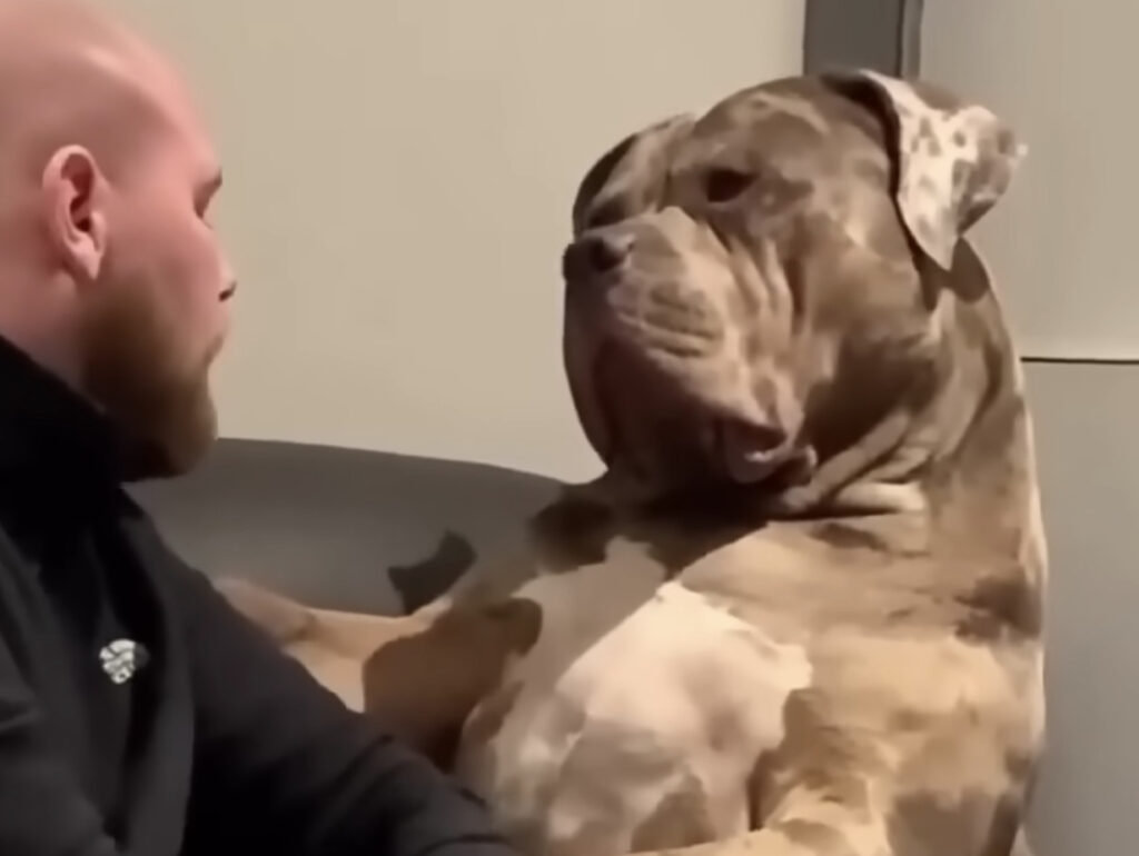 午前の忙しい時間が終わって まったりとしたお昼休み中。 ふかふかのソファでくつろいでいるのは、 一匹の大型犬さん。 ソファにちゃんと腰掛けて 座っている姿はまるで人間のよう! 飼い主さんが声をかけられて、 「うん? なに?」 チラリとカメラを見る... -