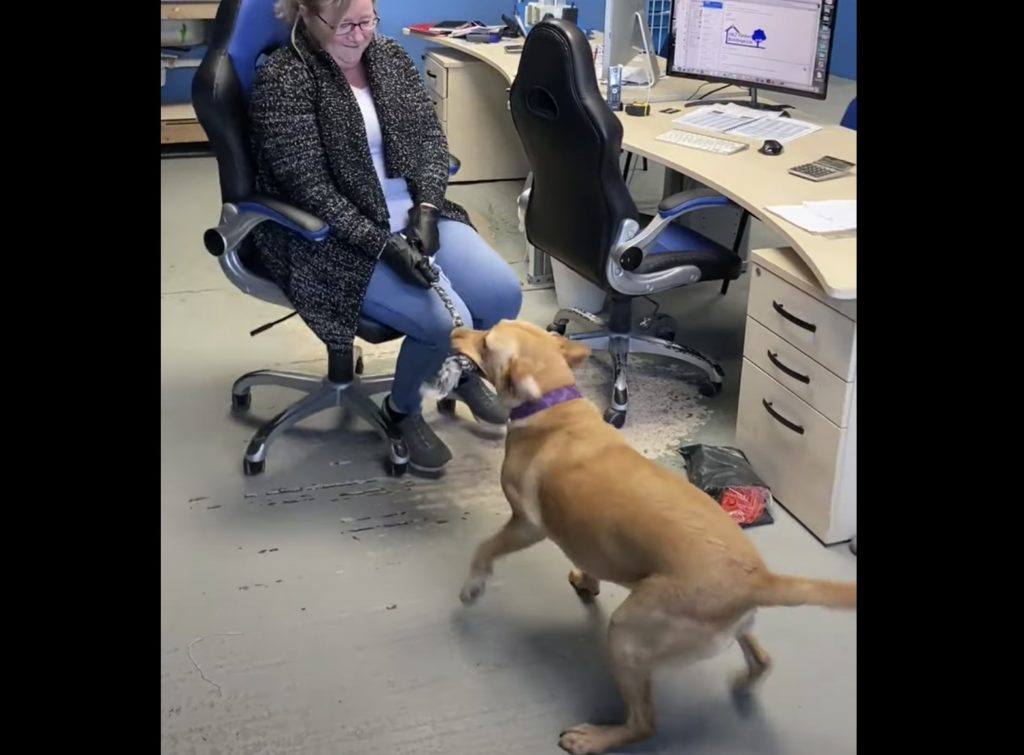 職場に愛犬を連れてきて良いという 夢のような仕事環境! それだけでも十分羨ましいんですが 就業時間が近づくと、犬さんが 待ちきれずに遊びに誘ってくれるという 楽しそうな動画をご紹介。 オフィスで仕事中だった飼い主さんですが もう遊びたいモードに... -