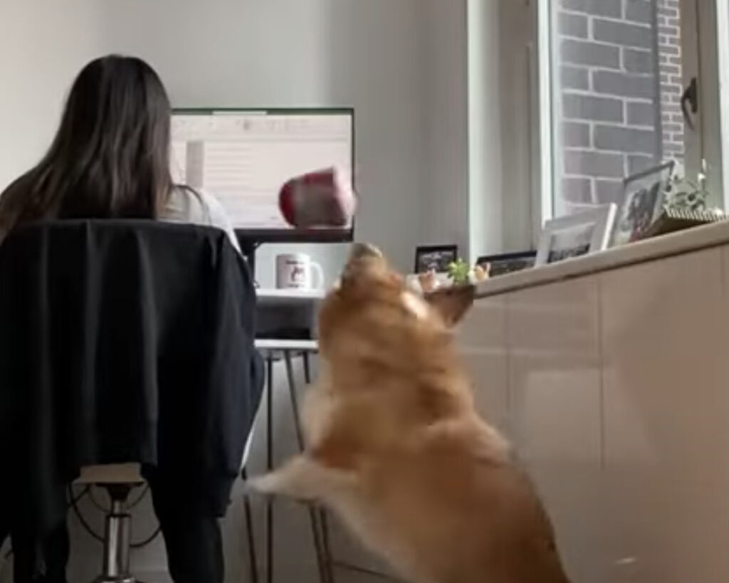犬「まだ仕事する気なの!?」飼い主さんを早く職場から帰したい!