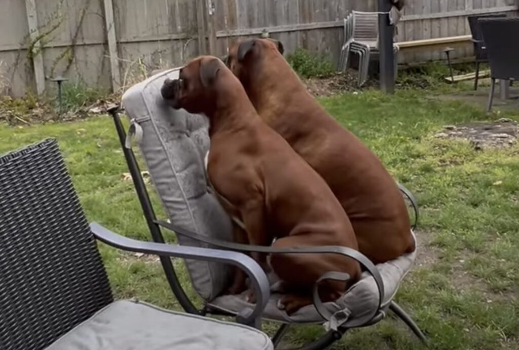「絶対譲らない!」 頑固なボクサー犬、ギュウギュウなのに1つの椅子に…