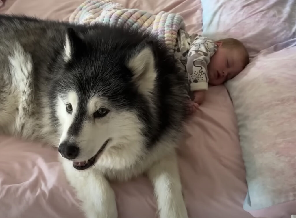 アラスカンマラミュートのニコさん。 いつもはいたずらっ子なんですが、 実は人にやさしい母性にあふれる子! 新しい家族である赤ちゃんがベッドで眠っていると その様子が心配なようで... 赤ちゃんがベッドから転がり落ちないように 体を張って守ってくれ...