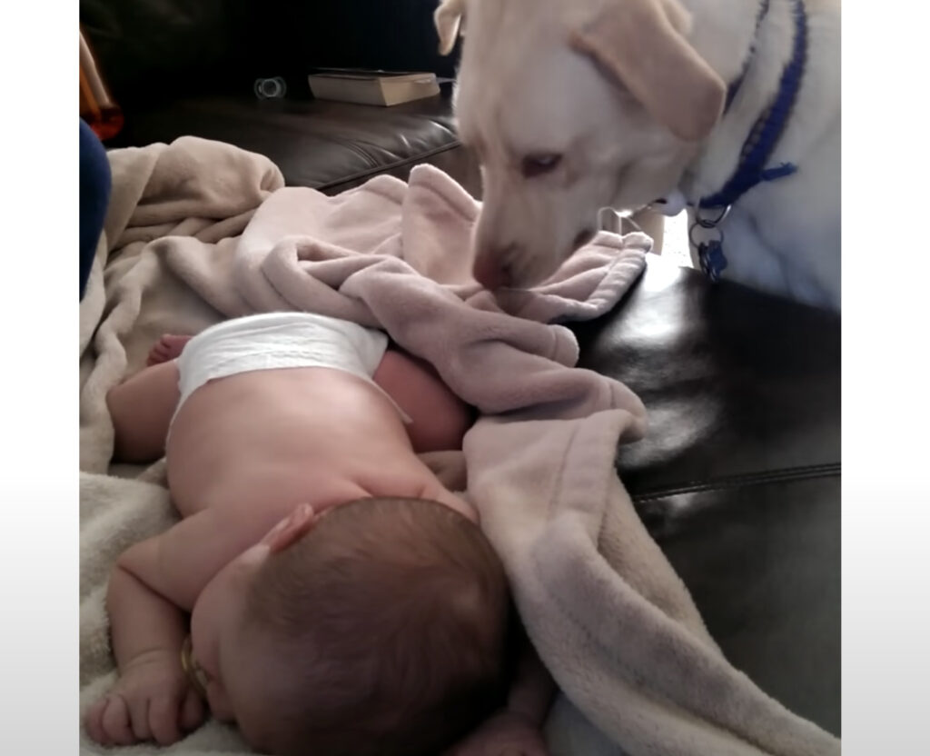 おむつ姿で寝ている赤ちゃん。 ブランケットの上で寝ていて、 気持ちよさそうですが... 一緒に暮らしている犬さんは、 その様子がちょっと気になったみたい。 近くに駆け寄ってきて ブランケットを鼻先でえいっ!! 優しく、とーっても上手に 赤ちゃんを包...
